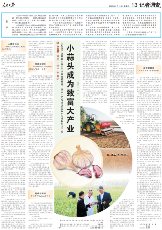 8月11日,《人民日報》整版刊發(fā)題為《小蒜頭成為致富大產(chǎn)業(yè)》的報道。文章指出,水發(fā)農(nóng)業(yè)集團(tuán)權(quán)屬公司金鄉(xiāng)縣和福隆水發(fā)農(nóng)業(yè)發(fā)展有限公司研發(fā)黑蒜、蒜汁等產(chǎn)品,延伸產(chǎn)業(yè)鏈,提升價值鏈,打造增值新路徑。