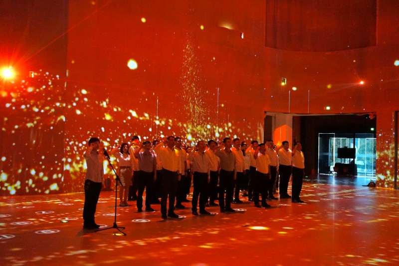 參觀結束后,全體黨員面向黨旗高舉右拳,重溫入黨誓詞,用鏗鏘有力的聲音表達了對黨的熱愛與忠誠。大家紛紛表示,此次學習不僅是一次深刻的黨史教育,更是一堂生動的國防教育課,讓自己更加清楚地認識到和平來之不易,強國必須強軍,國防人人有責。